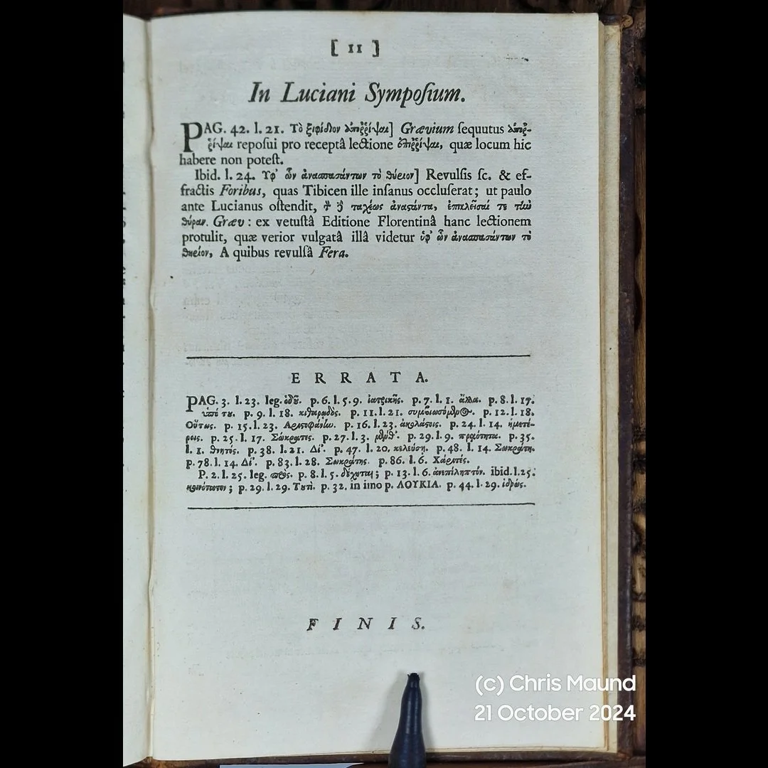 1711 With Provenance PLATONOS KAI XENOPHONTOS SYMPOSIA; PLOUTARCHOU SYMPOSION HEPTA SOPHON; LOUKIANOU SYMPOSION Ē LAPITHAI By Very Good Philosophy